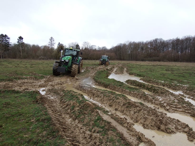 Im Projektgebiet Büecke und Hiddingser Schledde (NRW 6) wurden Kleinstgewässer mithilfe von Fahrspuren durch schwer beladene Schlepper angelegt. Hierbei wird kleinflächig der Boden verdichtet. Die Vertiefungen können sich nach einem Regenschauer mit Wasser füllen und bieten den Unken einen optimalen Lebensraum.