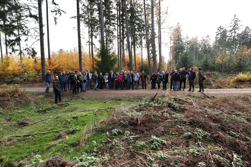 Stadthagen, November 2018. Insgesamt 40 Studentinnen und Studenten des Studiengangs Landschafts-entwicklung der Hochschule Osnabrück haben im Rahmen des Moduls Landschaftspflege an einem Seminar und einer Exkursion im Rahmen des LIFE-Projektes BOVAR des NABU Niedersachsen teilgenommen. Dabei ging es darum einen Einblick in die praktischen Tätigkeiten des EU-LIFE-Projektes zu bekommen. Nach der Vorstellung des Projekts, der Projektregion sowie einer Exkursionseinführung durch die Untere Naturschutzbehörde folgte ein Vortrag zum Thema „Wasser- und Sedimentrückhaltung in den Forsten bei gleichzeitiger Förderung der Biodiversität“ zur Entwicklung eines Biotopverbunds für Amphibien. Im Anschluss auf der Exkursion, geführt von Bruno Scheel und Christian Höppner, wurden praktische Maßnahmen im Naturschutz besichtigt sowie weitere Themen aus der Naturschutzpraxis wie das Beweidungsmanagement im Steinbruch Liekwegen und Vernetzungsmaßnahmen in den umliegenden Forsten gezeigt.