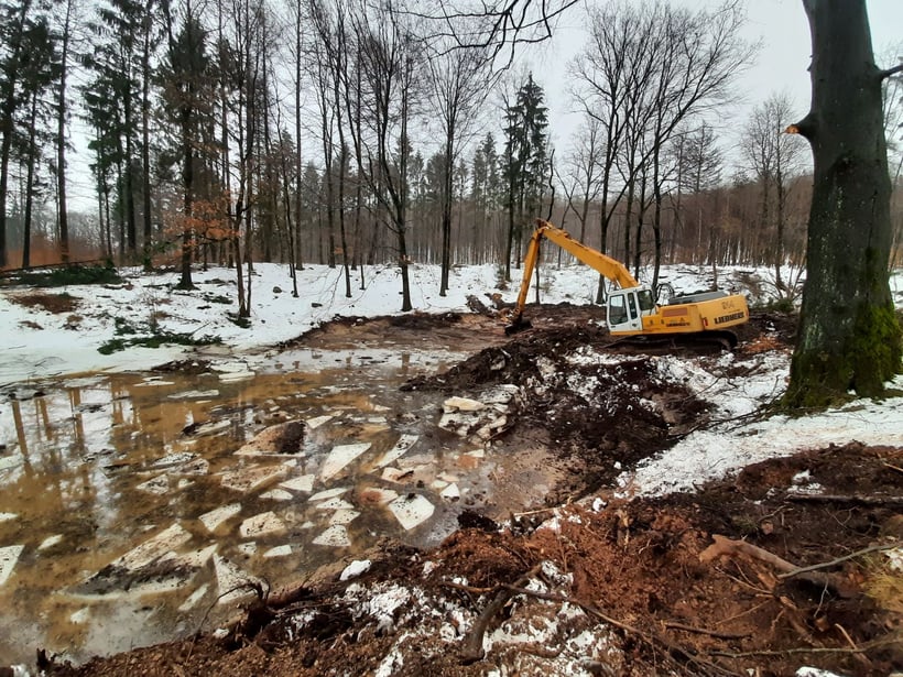 Die Maßnahmen im Stiftungswald sind bereits die dritte Großmaßnahme im Landkreis Holzminden durch das Projekt LIFE BOVAR. Bereits Ende 2018 und im Frühjahr 2019 wurden im NABU-Steinbruch westlich von Stadtoldendorf und im Naturschutzgebiet Tuchtberg Amphibienschutzmaßnahmen umgesetzt. Torsten Maiwald von der NABU-Gruppe Holzminden erinnert sich an die Maßnahme im NABU-Steinbruch: „Ziel der Maßnahme war es, den Steinbruch wieder als einen geeigneten Lebensraum für Kammmolch und Geburtshelferkröte herzurichten. Tatsächlich konnte ich den Kammmolch in den vergangenen beiden Jahren wieder mit steigender Tendenz nachweisen und das Gebiet ist nun auch für eine Wiederansiedlung der Geburtshelferkröte gut geeignet. Ich bin optimistisch, dass sich die Amphibiensituation hier und auf den Stiftungsflächen gut entwickeln wird.“
