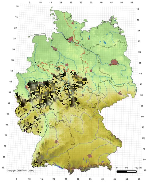 Die Geburtshelferkröte kommt in Deutschland im Berg- und Hügelland des westlichen Mitteldeutschlands sowie im südlichen Schwarzwald vor. In Deutschland erreicht sie dabei sowohl ihre nördliche als auch ihre östliche Verbreitungsgrenze.